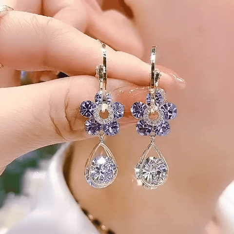 ✨ Sumérgete en la profundidad del color morado con nuestros aretes de flor de cristal. Añade un toque de misterio y encanto a tu estilo con este ton