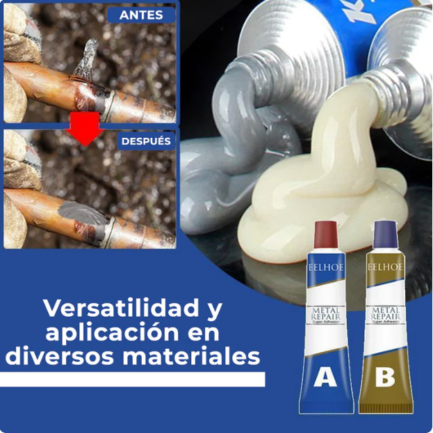 🧪 Fórmula Bicomponente A+B: Fusiona dos componentes para una reparación más robusta y duradera.